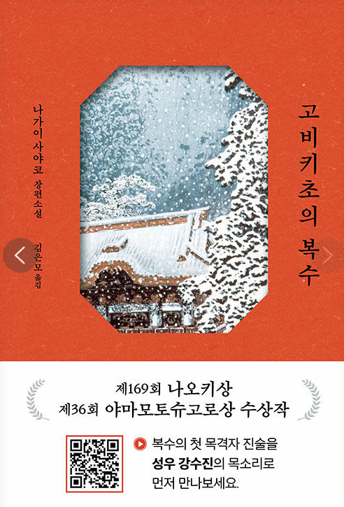 https://www.aladin.co.kr/shop/wproduct.aspx?ItemId=339744235 고비키초의 복수휴머니즘이 진하게 담긴 시대소설로 독자들에게 많은 사랑을 받아온 저자 나가이 사야코가 독특한 복수 목격담을 선보인다. 사건의 전말을 쫓는 미상의 인물에게 들려주는 다양한 사람들의 목www.aladin.co.kr우연히 알라딘 광고보고 선택한 책.처음에는 무슨 이야기인 줄 잘 모르고 시작을 했는데, 등장인물이 하나하나 이야기를 전달하면서 전체의 그림이 그려지는 내용의 책이었다."몇 명에게 물어봐도 마찬가지일걸요. 훌륭한 복수였다. 그것이 전부예요." 책표지 뒤의 광고 문구처럼 정말로 훌륭한 복수였다.[나는 지갑이다] 이후로 가장 맘에드는 인터뷰식? 액자식? 책이었음. **********..